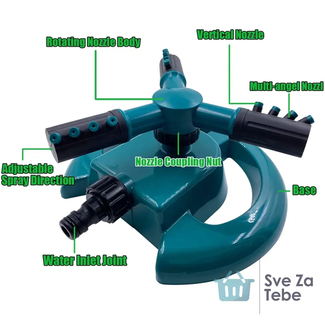 360° rotacija osigurava ravnomerno zalivanje celokupnog travnjaka ili bašte.