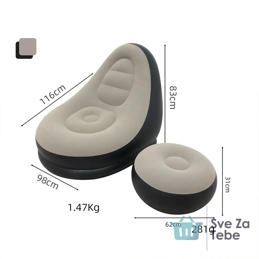 Ova fotelja na naduvavanje sa tabureom pruža savršenu podršku za leđa i noge, omogućavajući vam da se opustite nakon napornog dana.